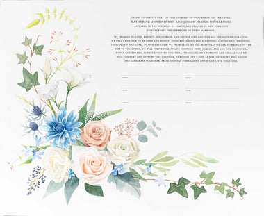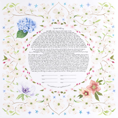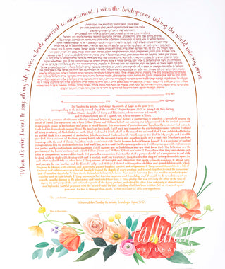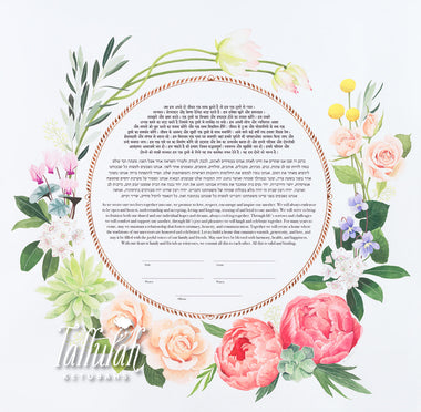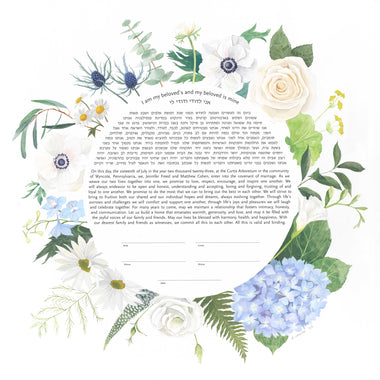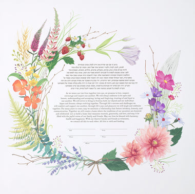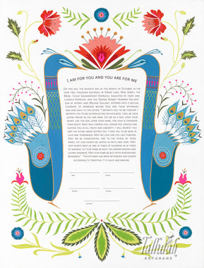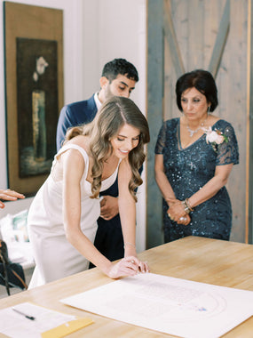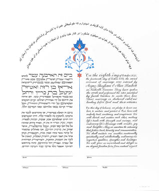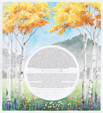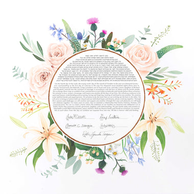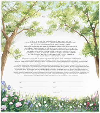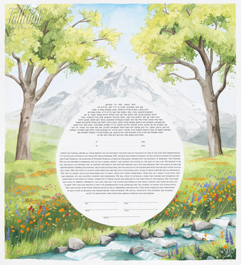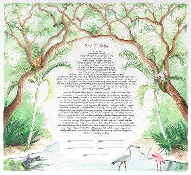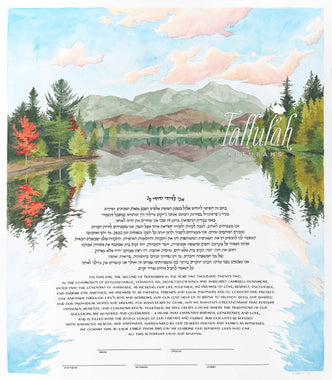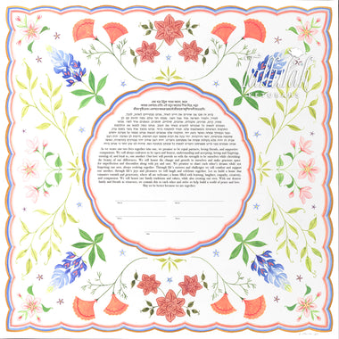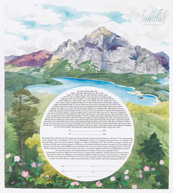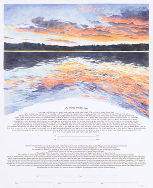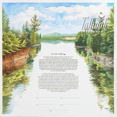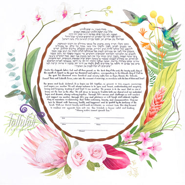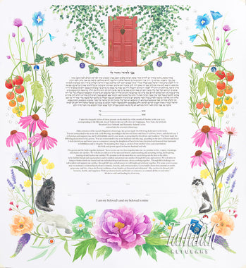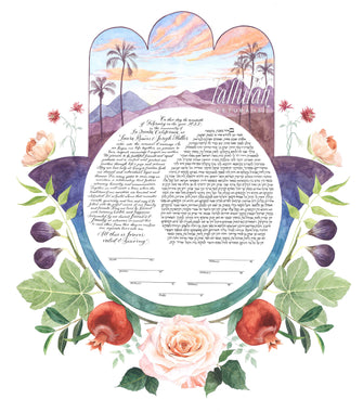 Tallulah Ketubahs began as a strictly custom commissions business, and this continues to be our preferred way of working. By building a relationship with our clients, we are able to help couples, be they Jewish, Secular, Interfaith or Same-sex, create custom works of art that are meaningful to them. We especially enjoy helping couples of different backgrounds and traditions to create a new visual symbol inspired by their unique love story. Scroll through the gallery for information on commissioning a custom ketubah.